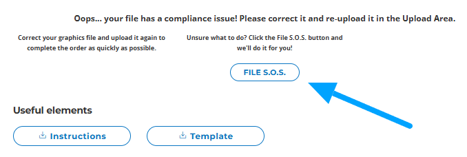 Directly in the upload area, as soon as the automatic check is completed (do not leave the page until you receive a feedback!). In this case, only for minor edits, the "SOS FILE" button may appear and we can take care of it